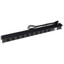 DYNAMIX 10 Outlet Vertical Power Rail (10A IEC C13) with 6KA C-Curve Circuit Breaker. Integrated 2m power cord (10A IEC C14) 0RU. Colour Black.
