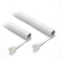 DYNAMIX Curly Handset Cord WHITE, 4 Wire RJ22 to RJ22 Cable. 370mm Coiled, 3m Stretched. Reverse (cross over) wired