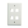 DYNAMIX Quad Port Face Plate for RJ45 110 Keystone Jacks. NOTE Jack pins at top of plate when installed vertically, on side when installed horizontally.