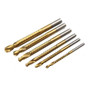 Introducing SKU-100ED's Auto Flat Routing Drill set Titanium Coated HSS. This set includes 6 bits, each measuring: