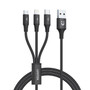 UNITEK 1.2m USB 3-in-1 Charge Cable. Integrated USB-A to Micro-B - Lightning Connector & USB-C Connector. Black Colour.